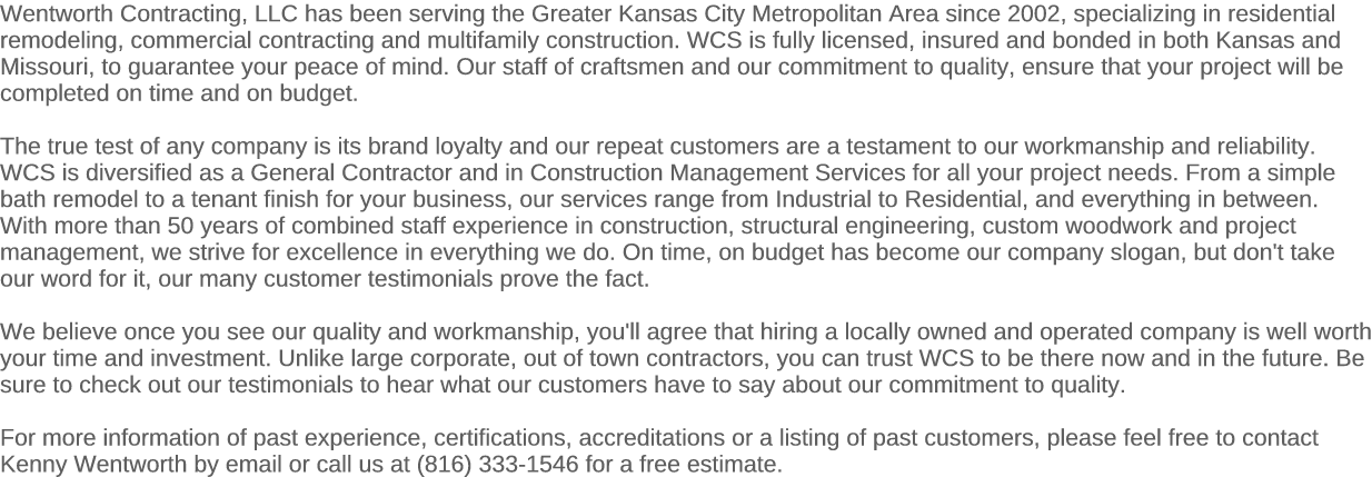 WENTWORTH CONTRACTING SERVICES, L.L.C. COPYRIGHT 2015